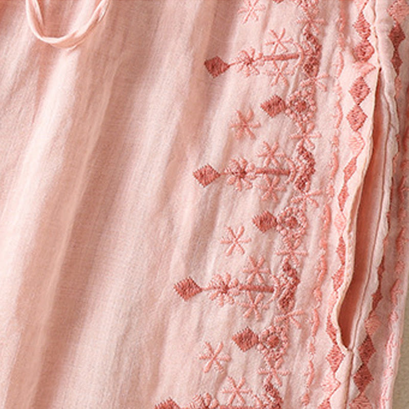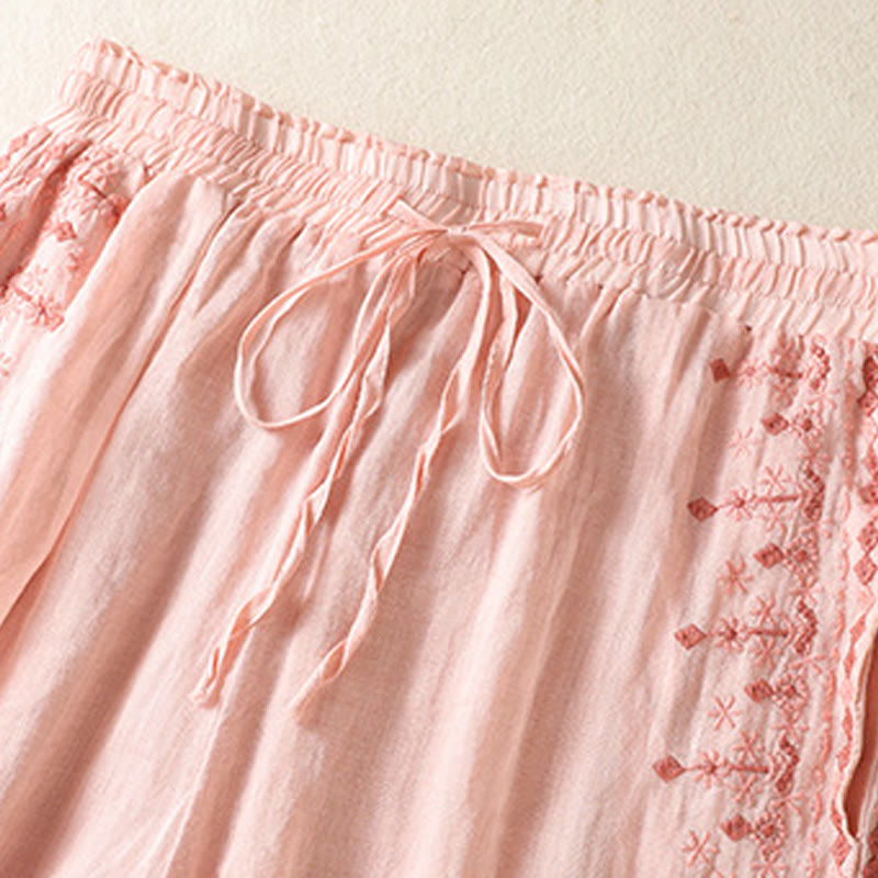 Buddha Stones Ethno-Stickerei Kordelzug Baumwolle Leinen Damenhose mit hoher Taille und weitem Bein und Taschen - Hellrosa - US8-10, UK/AU12-14,EU40-42 (2XL) - image 6