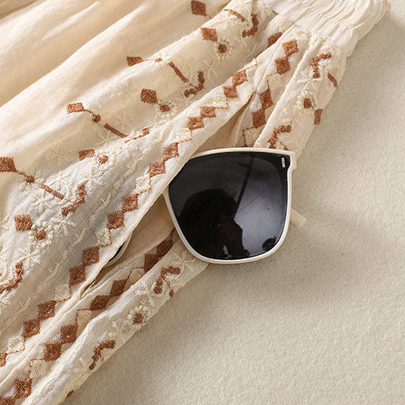 Buddha Stones Ethno-Stickerei Kordelzug Baumwolle Leinen Damenhose mit hoher Taille und weitem Bein und Taschen - image 10