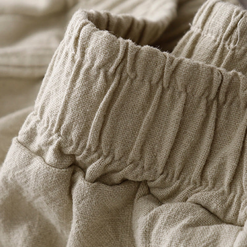 Buddha Stones Lässige, einfarbige Haremshose aus Baumwollleinen für Damen in Länge 7–8 mit Taschen - image 1