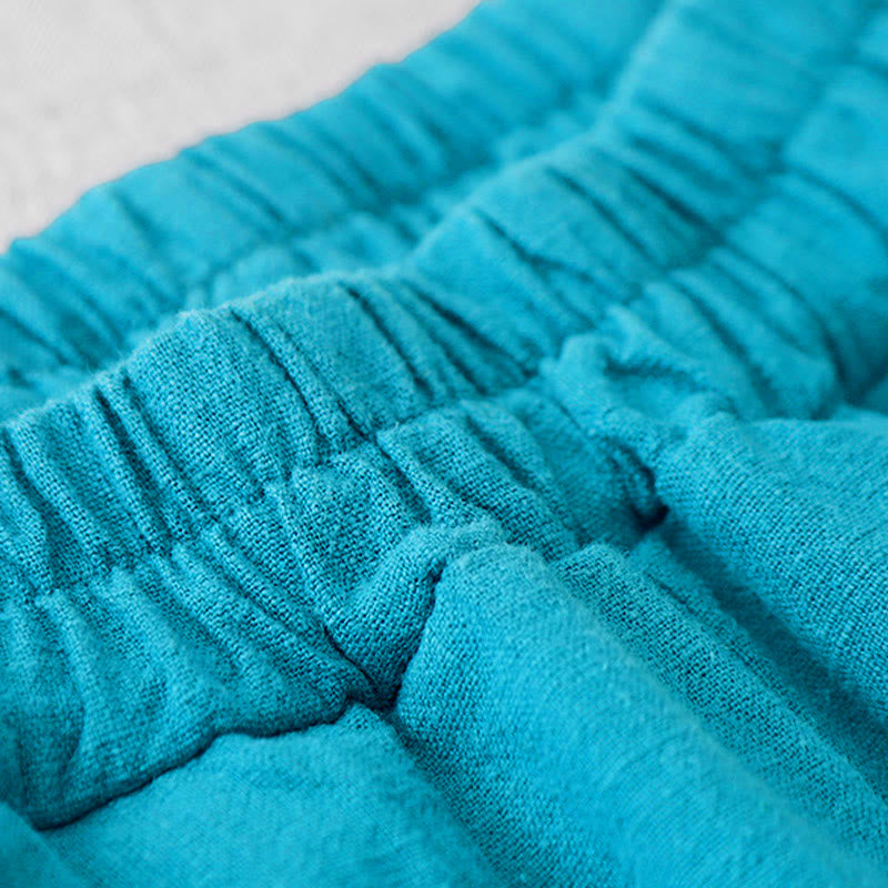 Buddha Stones Lässige, einfarbige Haremshose aus Baumwollleinen für Damen in Länge 7–8 mit Taschen - image 5