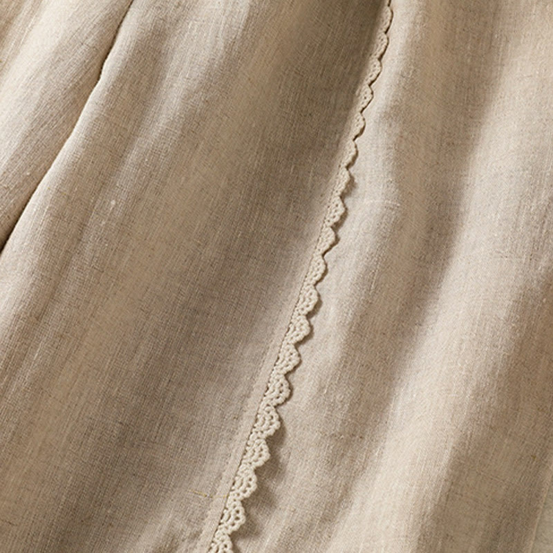 Buddha Stones Lässige, schlichte Haremshose aus Baumwolle und Leinen mit seitlichem Spitzendesign, Länge 7–8, mit Taschen - image 5