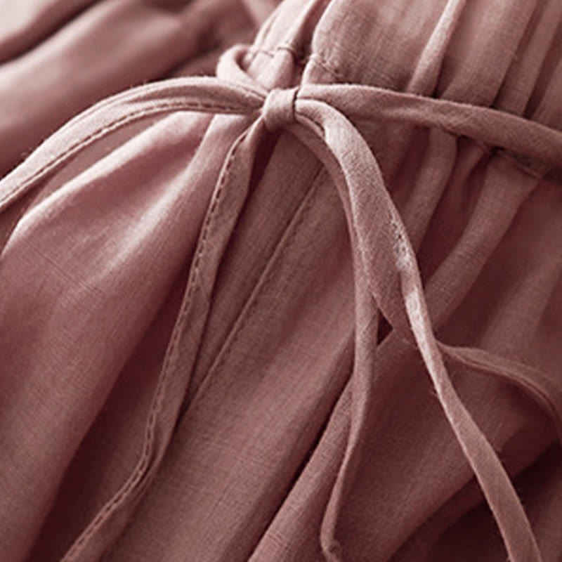 Buddha Stones Damenhose mit weitem Bein und Kordelzug aus Baumwolle im schlichten Design mit Taschen - image 10