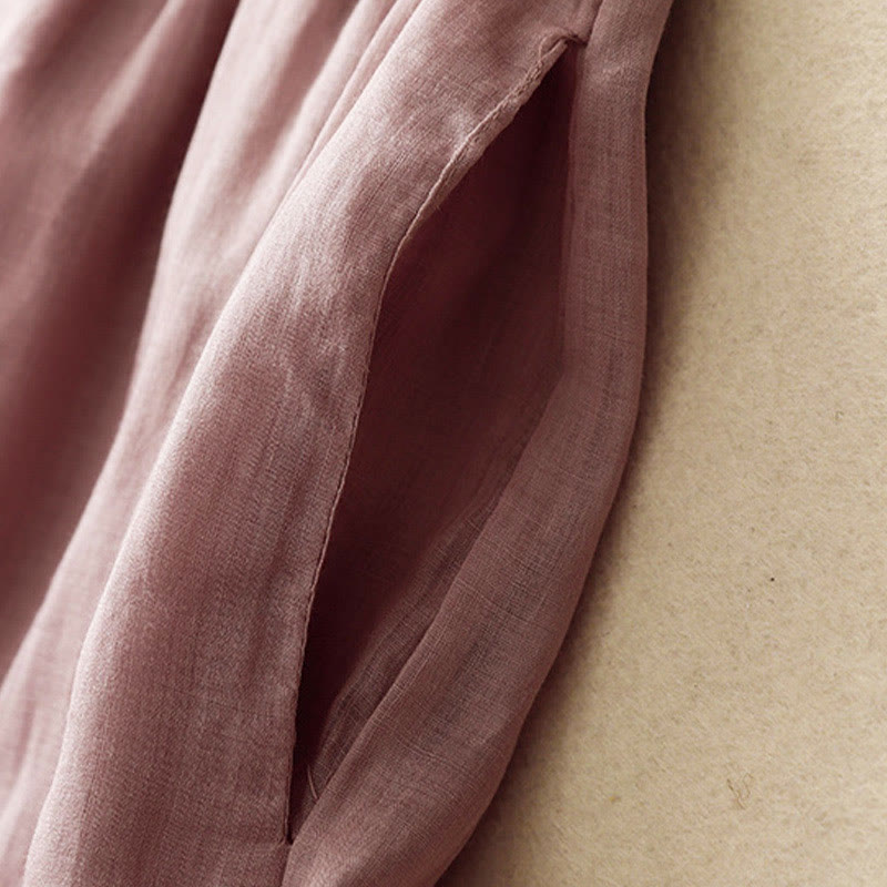 Buddha Stones Damenhose mit weitem Bein und Kordelzug aus Baumwolle im schlichten Design mit Taschen - image 25