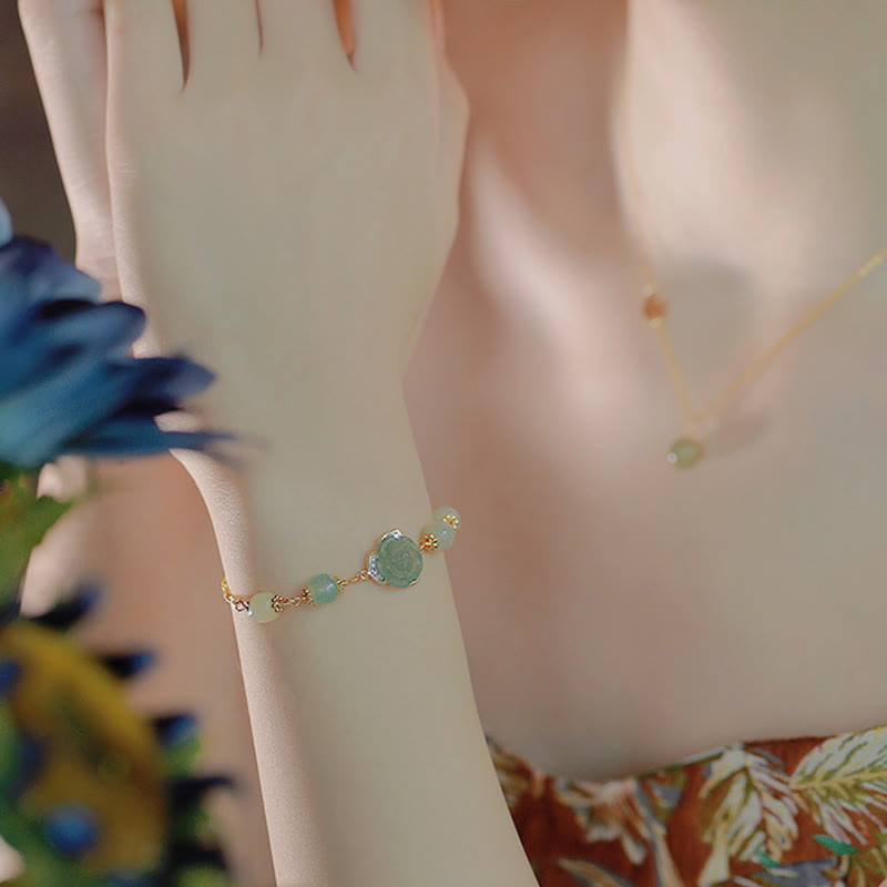 - Material: Hetian-Jade, Kupfer, 14 Karat vergoldete Oberfläche