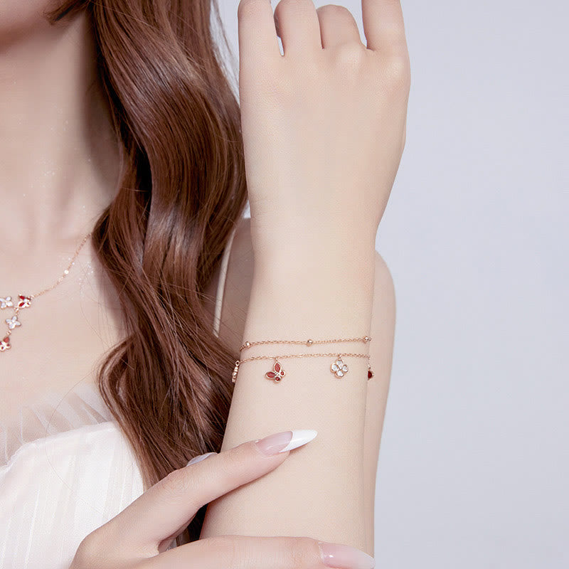 - Armbandgröße: Schmetterling 6,6 x 7,3 mm, vierblättriges Kleeblatt 7 x 8 mm