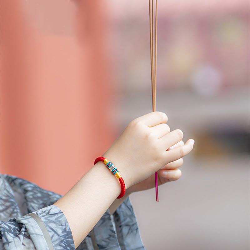 Buddha Stones Rote Schnur Schwarze Schnur Sechs Wahre Worte 925 Sterling Silber Verbindungsarmband - Rot - 19 cm - image 1
