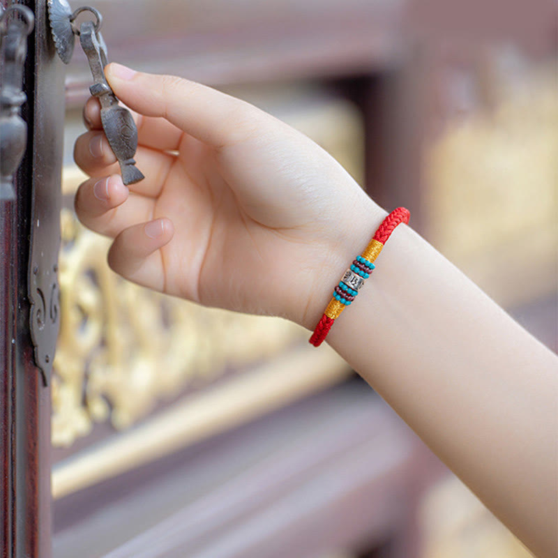 Buddha Stones Rote Schnur Schwarze Schnur Sechs Wahre Worte 925 Sterling Silber Verbindungsarmband