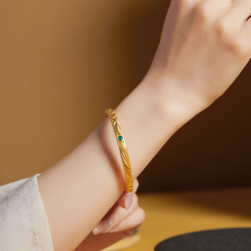 Buddha Stones 999 Sterling Silber Goldene Blume Hohl Design Segen Armband Armreif