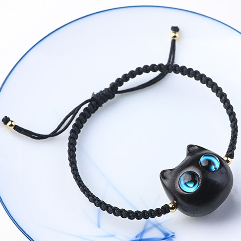 Buddha Stones, kleines Blatt, rotes Sandelholz, Ebenholz, süßer Katzenkopf, ruhiger Schutz, geflochtenes Armband - image 7