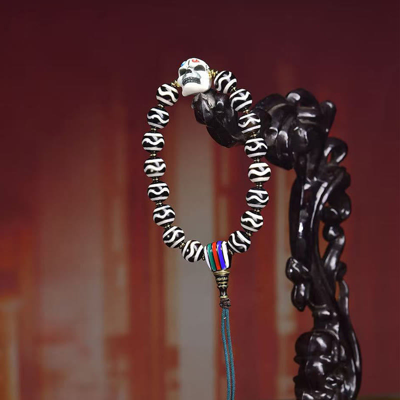 - Hinweis: Aufgrund der Beschaffenheit der Dzi-Perle kann es bei diesem Stück zu leichten Abweichungen in Farbe, Details und Gesamterscheinung kommen. Solche Eigenschaften unterstreichen die einzigartige Schönheit jedes Stücks.