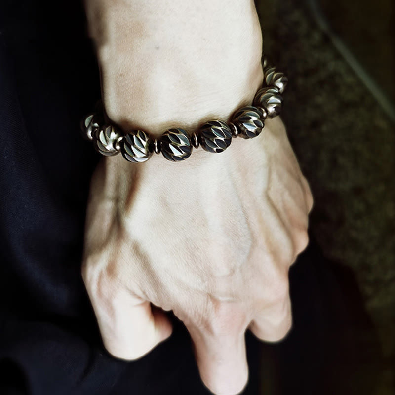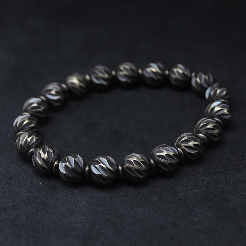 Buddha Stones Vintage Distressed Messer Schnitzmuster Kupfer Messing Perlen Reichtum Armband