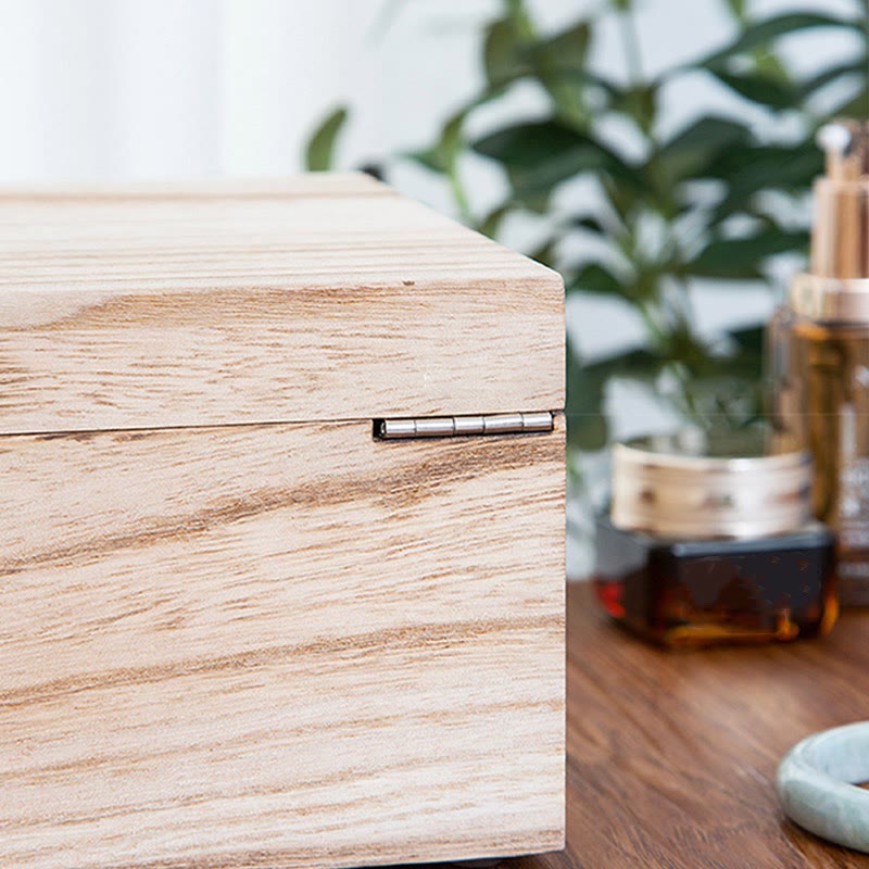 Buddha Stones Retro Beige Holz-Schmuckkästchen, zweilagige Schmuck-Aufbewahrungsbox mit Spiegel - image 14