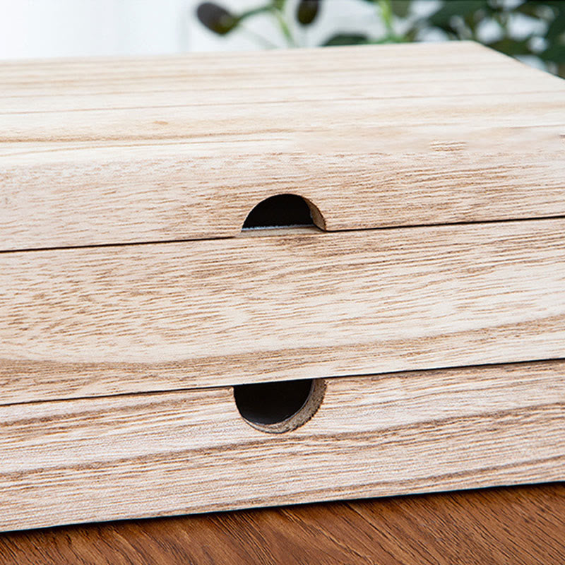 Buddha Stones Retro Beige Holz-Schmuckkästchen, zweilagige Schmuck-Aufbewahrungsbox mit Spiegel - image 15