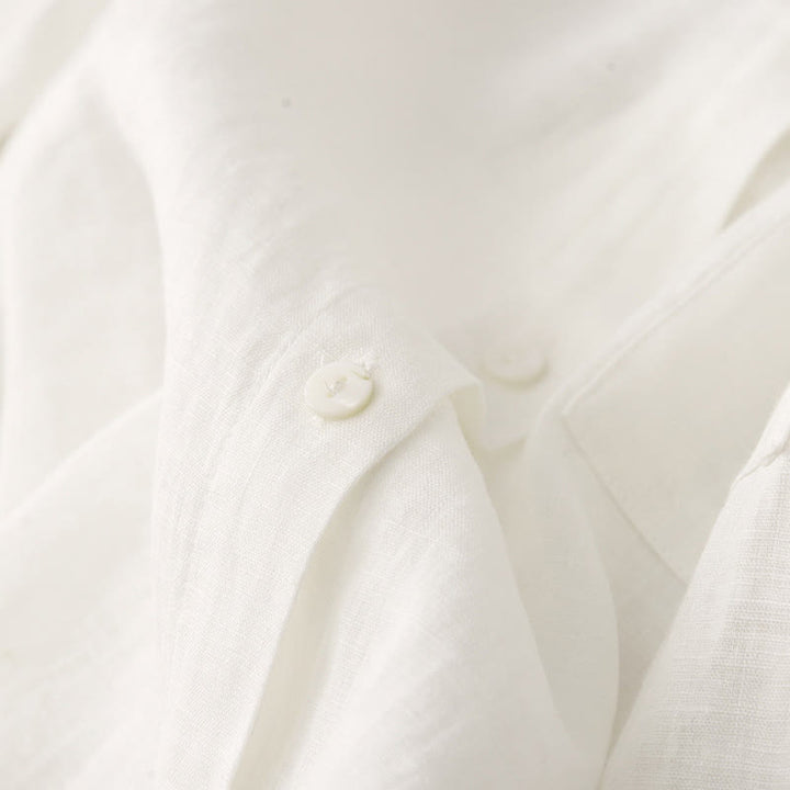 Buddha Stones Sommer 2-teilig Einfarbig Langarmshirt Top Strickjacke Shorts Meditationskleidung Damen Set mit Taschen - Weiß - US12, UK/AU16,EU44 (2XL) - image 28