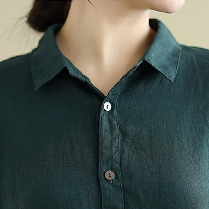 Buddha Stones Sommer-Midikleid aus Baumwolle und Leinen mit kurzen Ärmeln und Kordelzug und Taschen - image 19