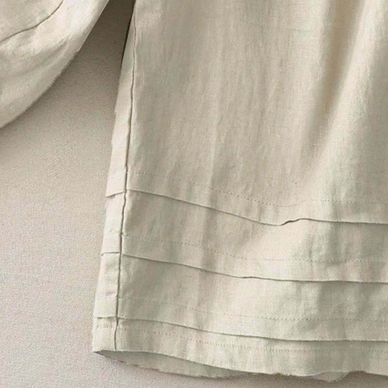 Buddha Stones Vintage-Hose aus Baumwolle und Leinen mit weitem Bein und Taschen, einfarbig, mit plissiertem Bündchen