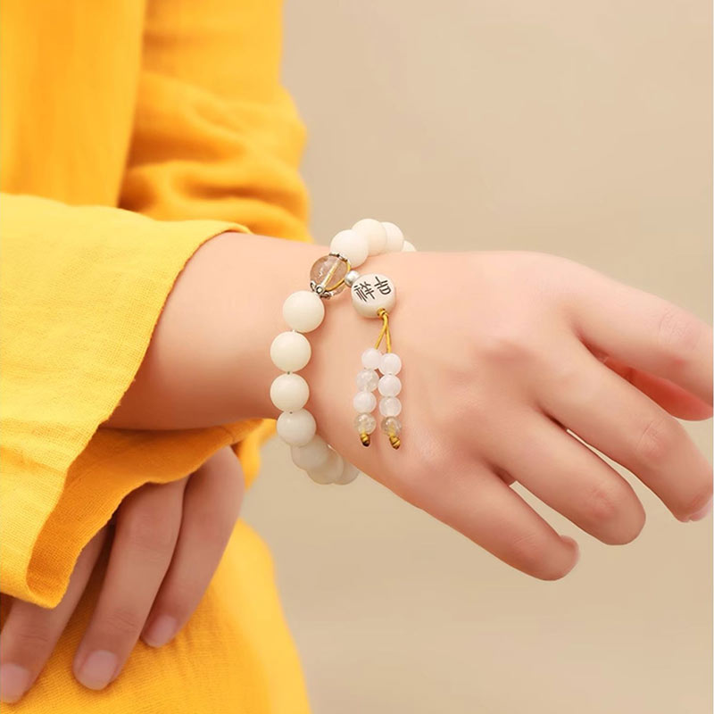 - Material: Bodhi-Samen, roter Achat, schwarzer Obsidian, rosa Kristall, Rutilquarz