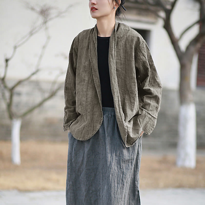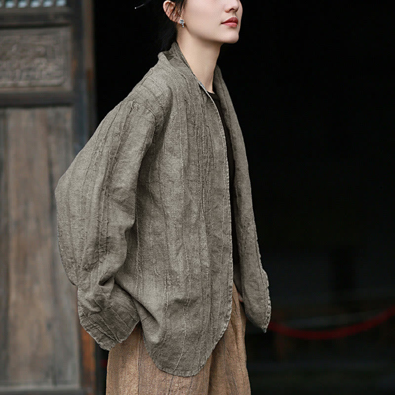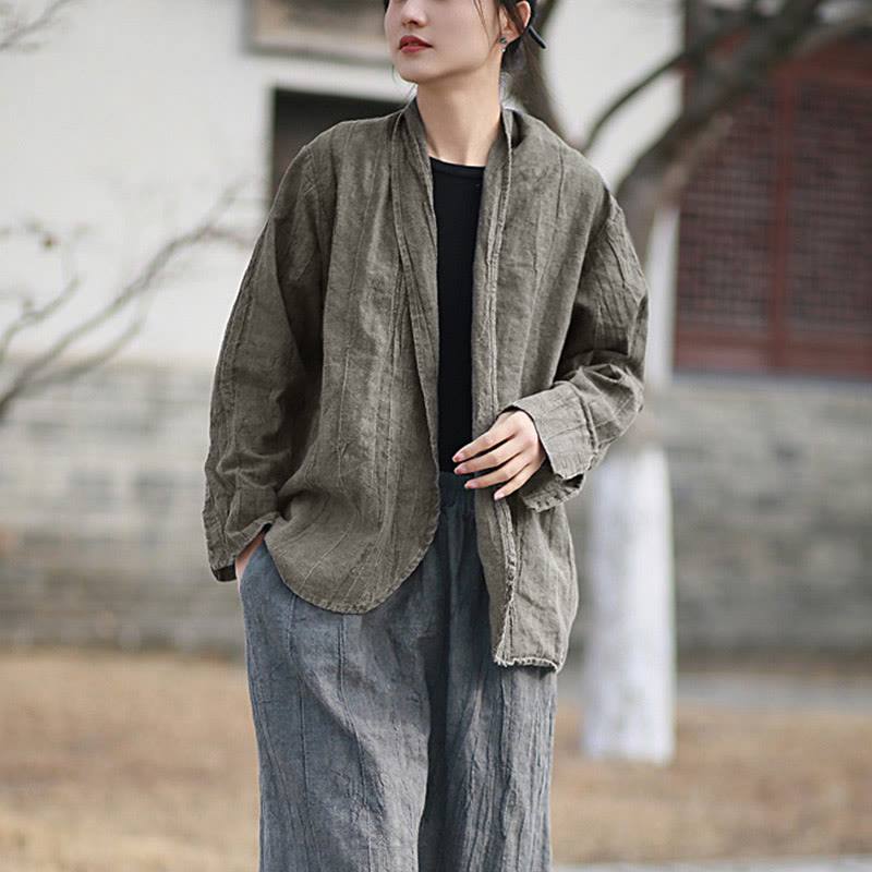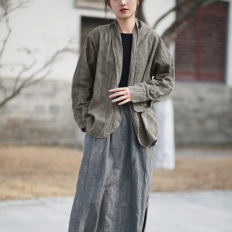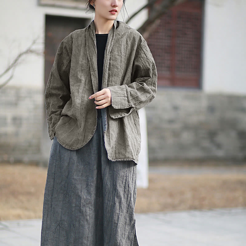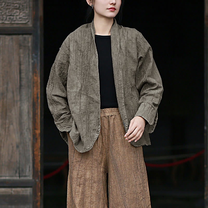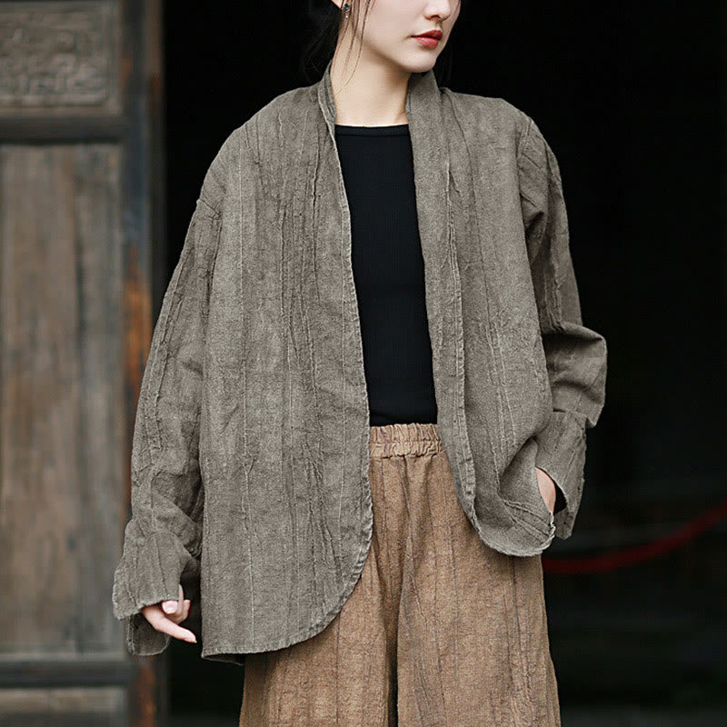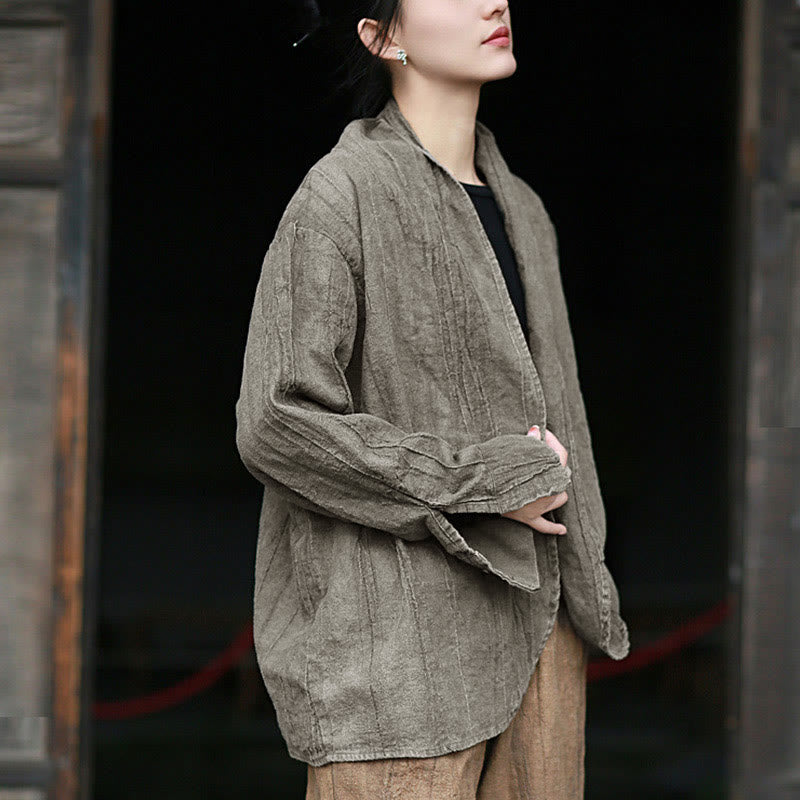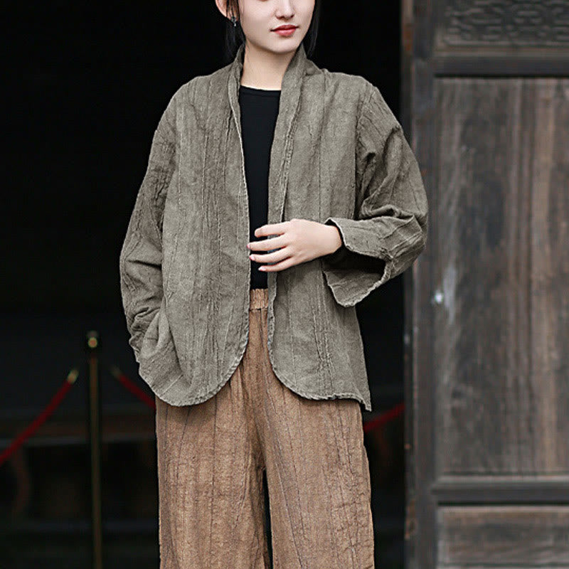 Buddha Stones Einfarbige Batik-Langarm-Zen-Meditationsjacke mit offener Vorderseite