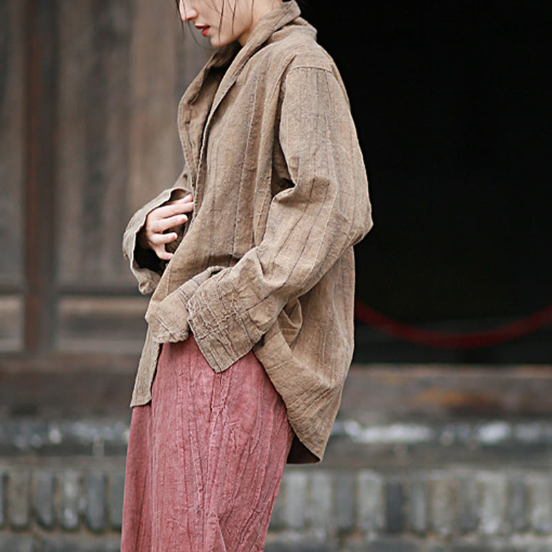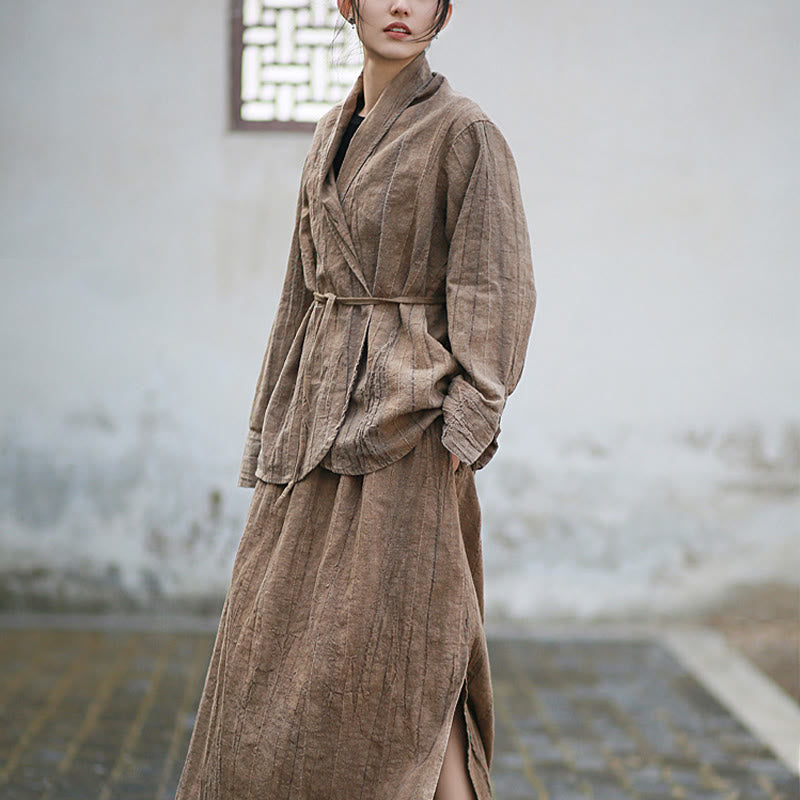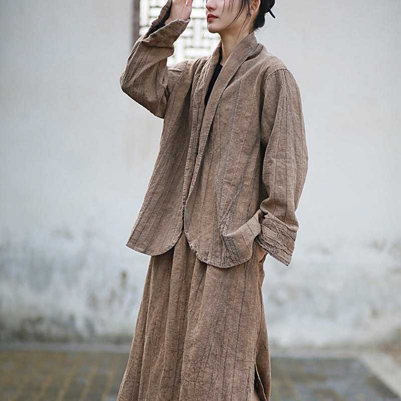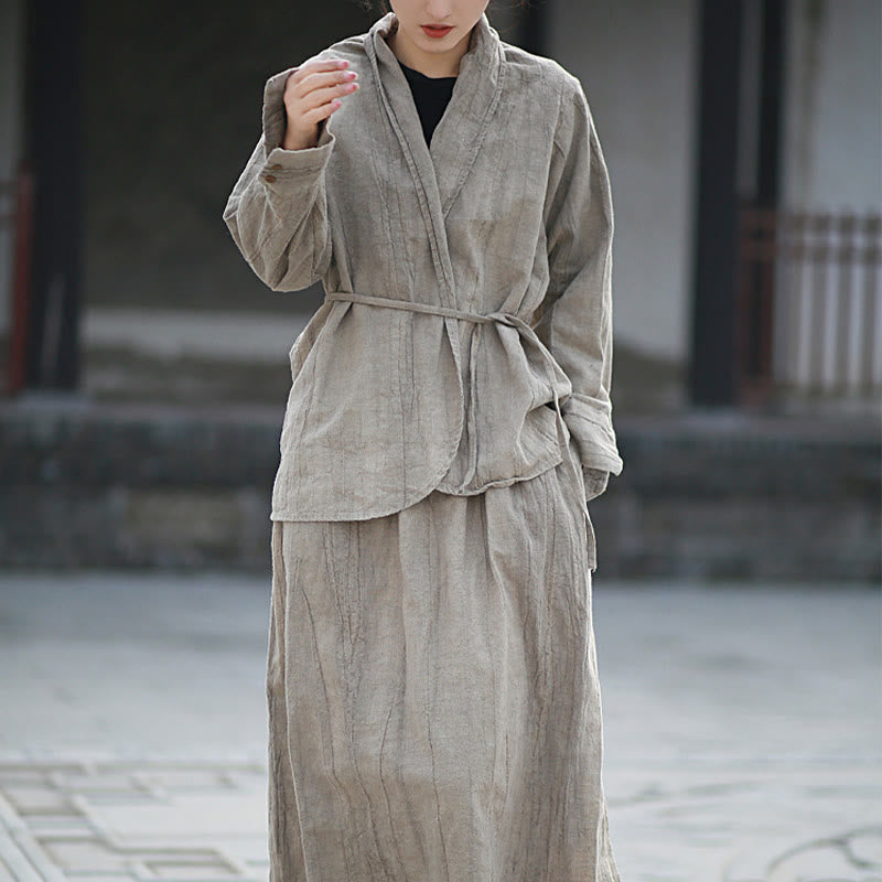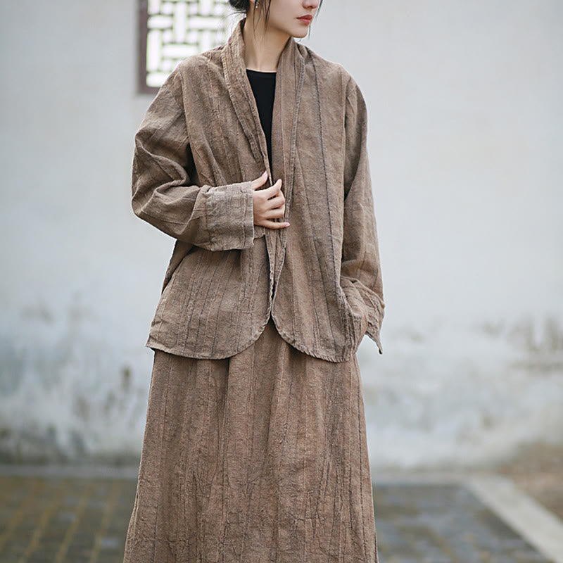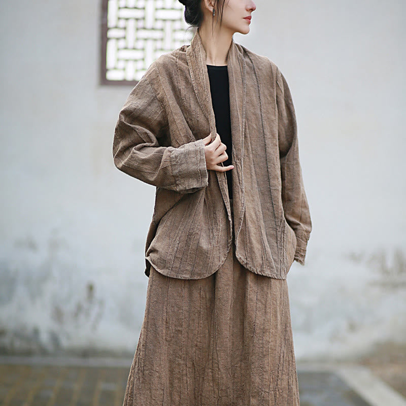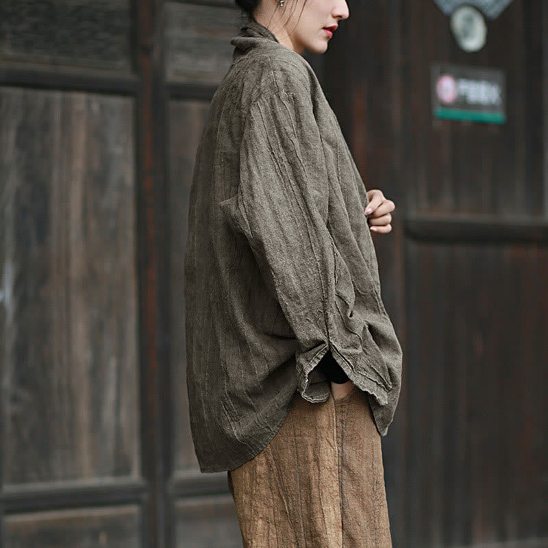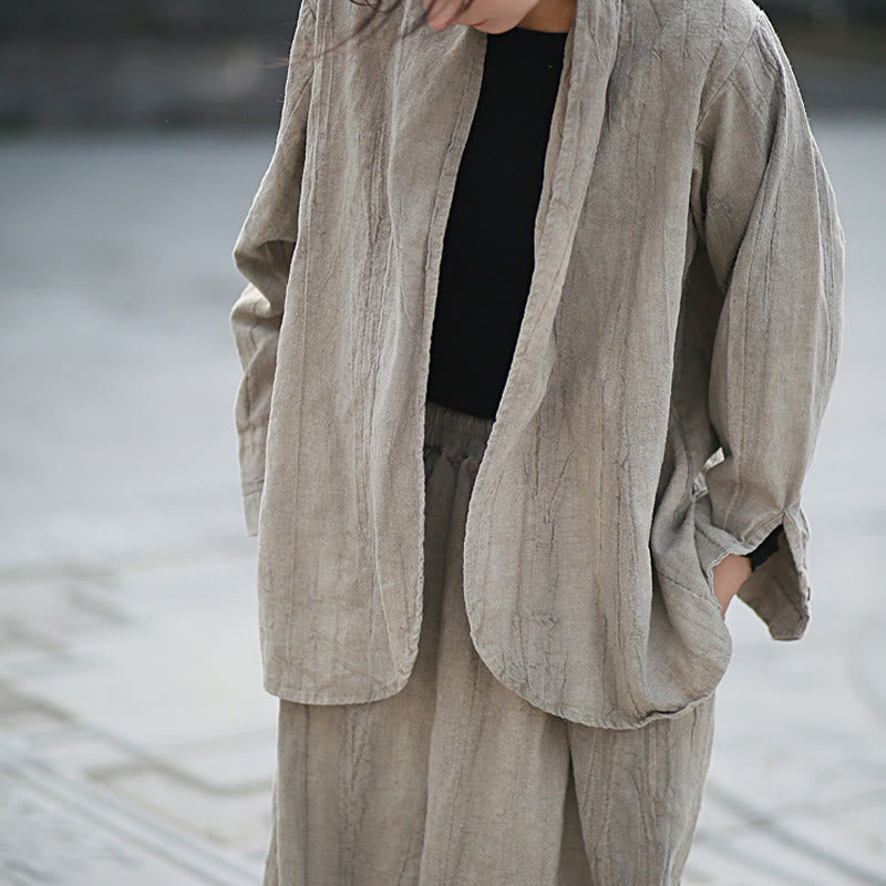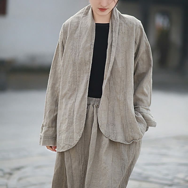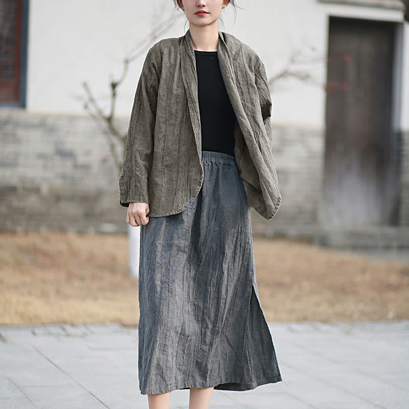 Buddha Stones Einfarbige Batik-Langarm-Zen-Meditationsjacke mit offener Vorderseite