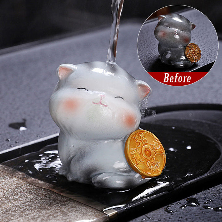 Buddha Stones, Farbwechsel, niedliche Mini-Katze, Kunstharz, Teehaustier, Reichtum, Heimfigur, Dekoration