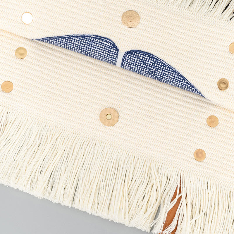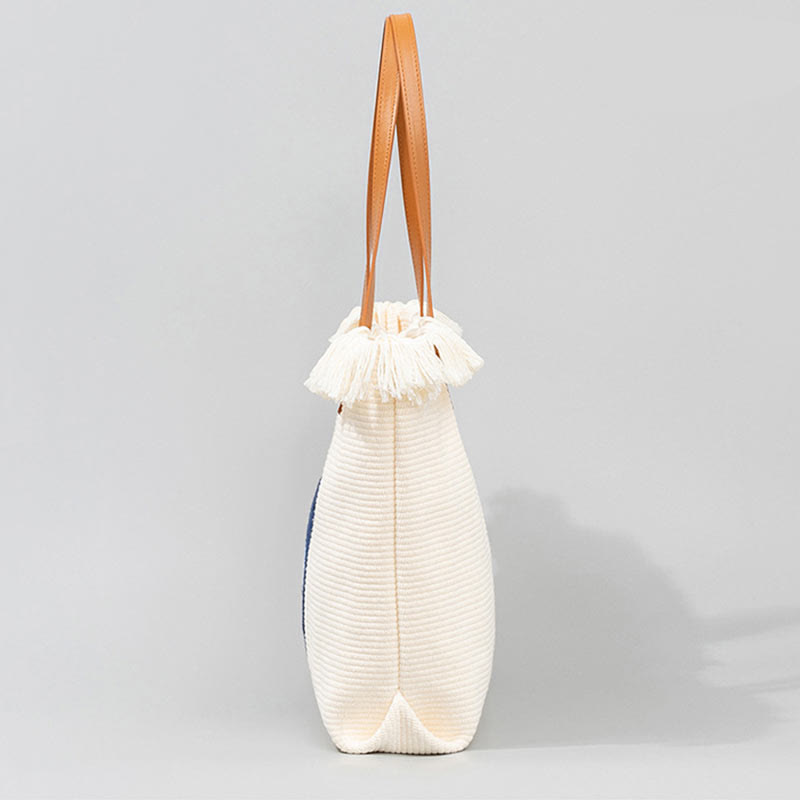 Buddha Stones Große Kapazität Böses Auge Blatt Hamsa Quaste Leinwand Umhängetasche