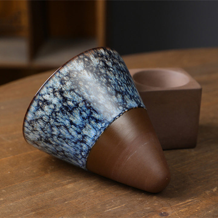 Buddha Stones Retro Kiln Change Keramik-Kaffeebecher für Tee, Latte, Espresso, mit Standfuß, 200 ml