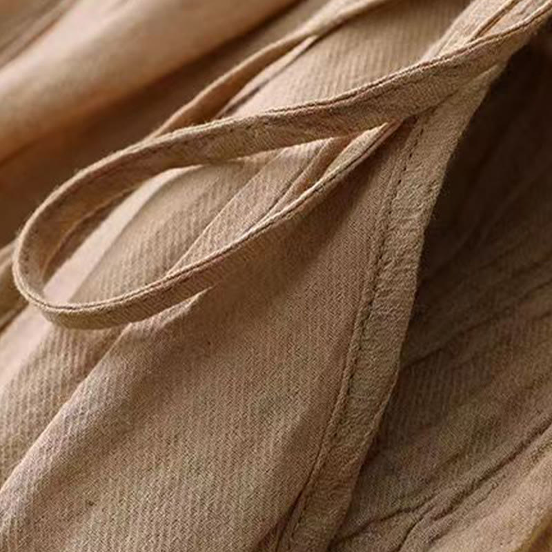 Buddha Stones Lässiges, schlichtes, handgefertigtes Midikleid mit Kordelzug in der Taille, ärmelloses Kleid aus Acryl mit Taschen