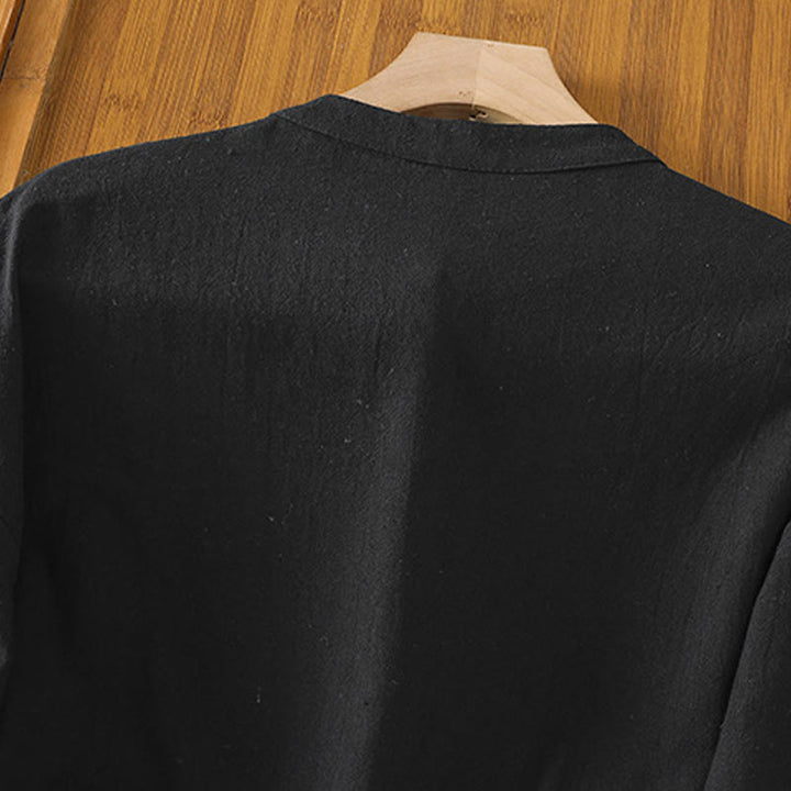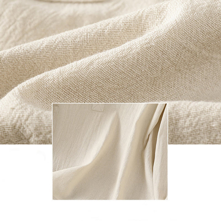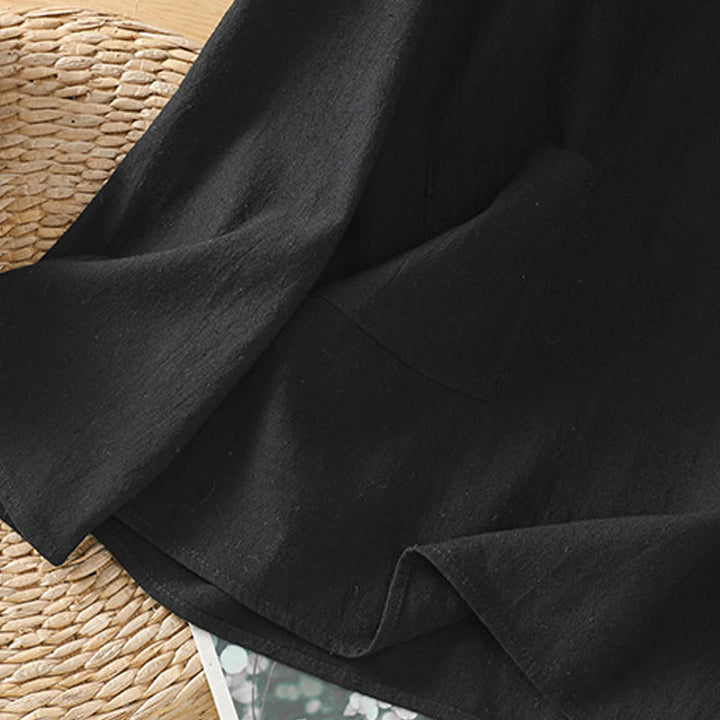 Buddha Stones Sommer Casual Pure Color Halbknopf Einfaches Design Damen Baumwoll-Leinen Halbarmhemd mit Tasche - image 8