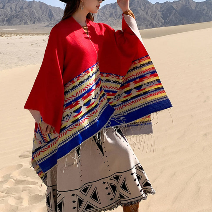 Tibetischer Schal mit Buddha Stonesn, bunte Geometrie, gemütlicher Winter-Reiseschal