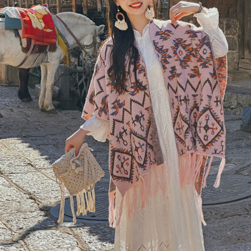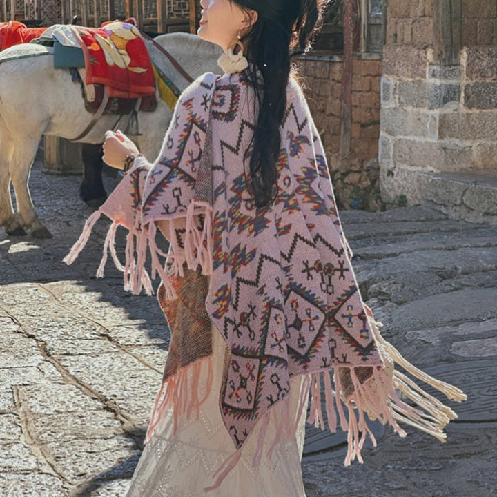 Tibetischer Schal mit Buddha Stonesn, gestreift, Geometrie-Muster, Winter, gemütlich, für Reisen, gestrickter Schal