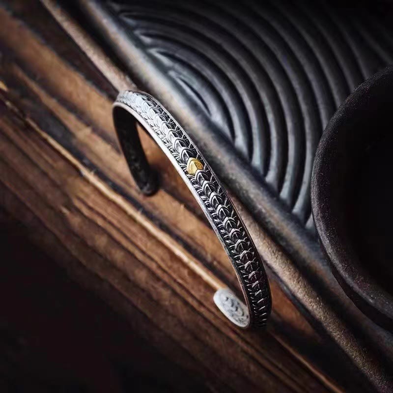Armreif mit Buddha Stonesn, Vintage-Stil, Drachenschuppen-Muster, Glück, Reichtum