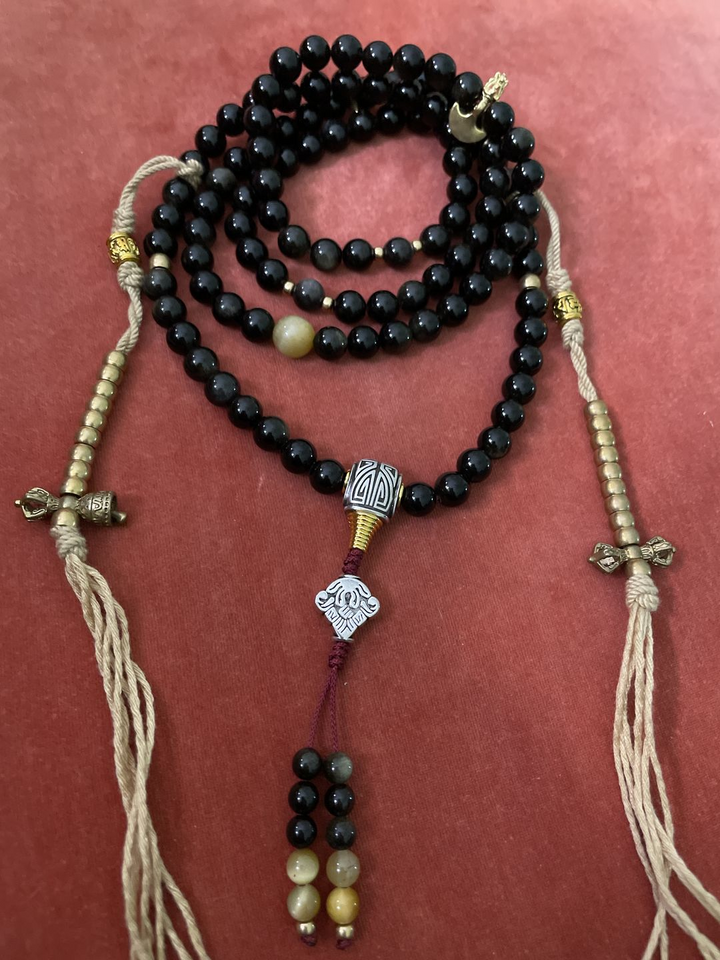 Wunderschön!! 108 Mala-Perlen, Goldglanz, Obsidian, Tigerauge, Adlerauge, Stein, Reichtumsarmband. Schnell versendet und war genau das, was ich gesucht habe :-)