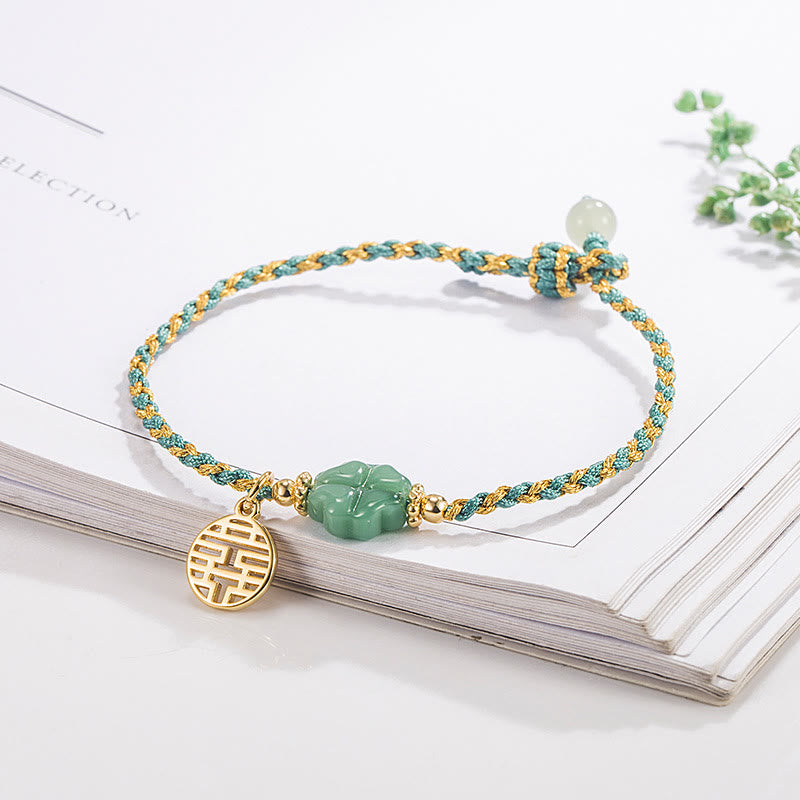 Buddha Stones Glücksarmband aus Kupferharz mit vierblättrigem Kleeblatt