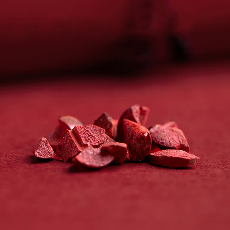 In der buddhistischen Kultur wird Zinnober häufig zu Gebets- und Rosenkränzen verarbeitet. Es wird beim Rezitieren buddhistischer Schriften verwendet. Es kann den Geist der Menschen beruhigen, ihren Geist beruhigen, ihren Geist konzentrieren und ihre Weisheit verbessern. Es ist ein unverzichtbares Maskottchen für diejenigen, die Buddha verehren.