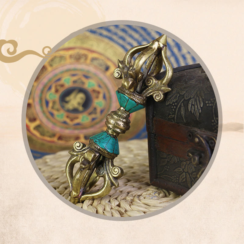 Vajra ist ein fünfzackiger Ritualgegenstand, der in buddhistischen Zeremonien in Tibet verwendet wird. Es symbolisiert die Eigenschaften eines Diamanten (Unzerstörbarkeit) und eines Blitzes (unwiderstehliche Kraft). Als Symbol für die Eigenschaften eines Diamanten bedeutet Vajra Unzerstörbarkeit, da Diamanten die härtesten Steine sind. Als Symbol für den Donnerkeil repräsentiert Vajra die unwiderstehliche Kraft. Es bedeutet, die Unwissenheit zu durchbrechen, da der Gott Indra mit dieser Waffe unwissende Personen tötet.