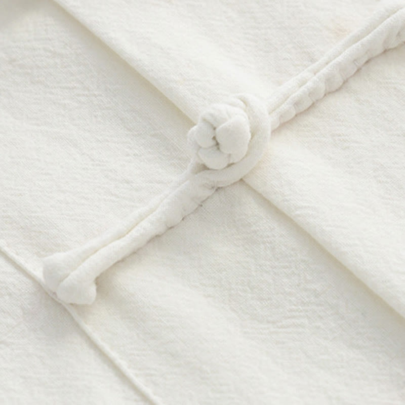 Buddha Stones Chinesische Froschknopf-Tang-Jacke Herren Kurzarmhemd Baumwoll-Leinenkleidung Mit Taschen - Weiß - US/ UK/AU44, EU54 (4XL) - image 0