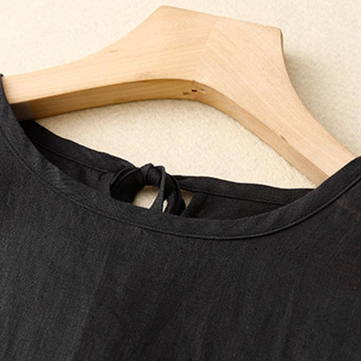 Buddha Stones Lässiges Damen-Midikleid mit kurzen Ärmeln, Schleife und Bindebändern und Taschen - image 10