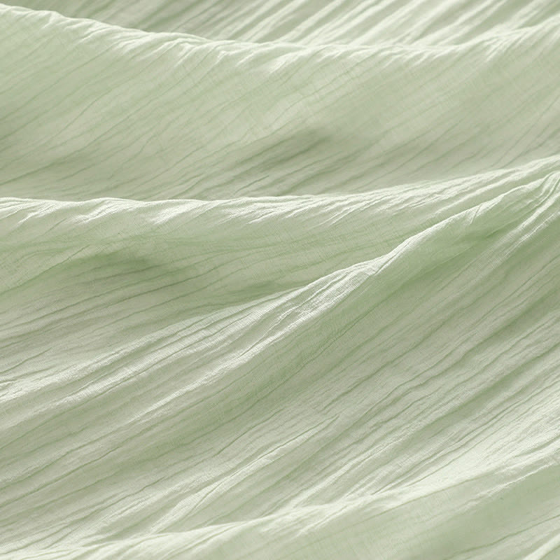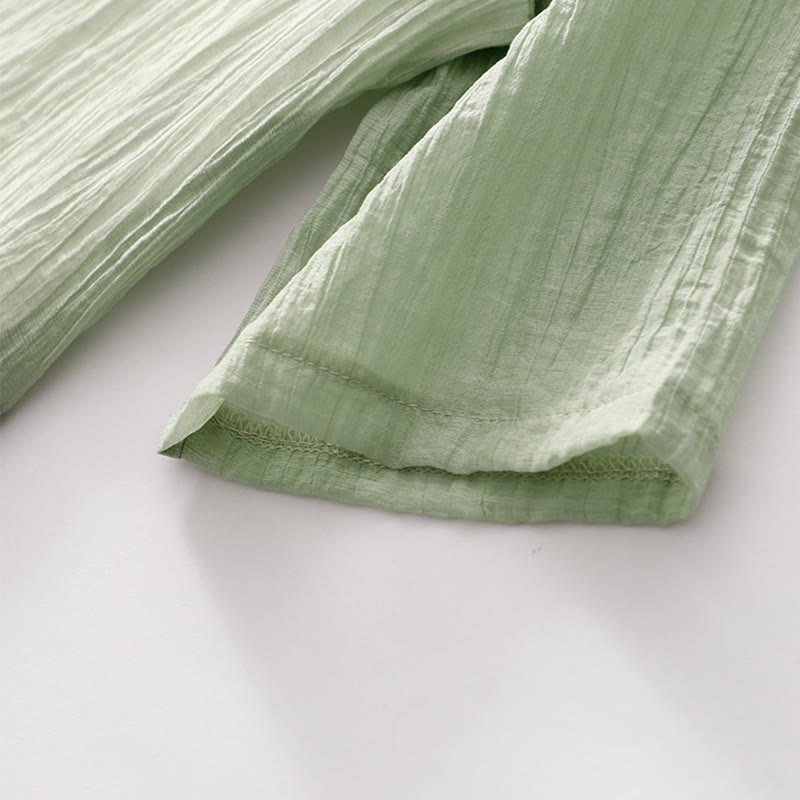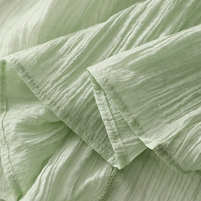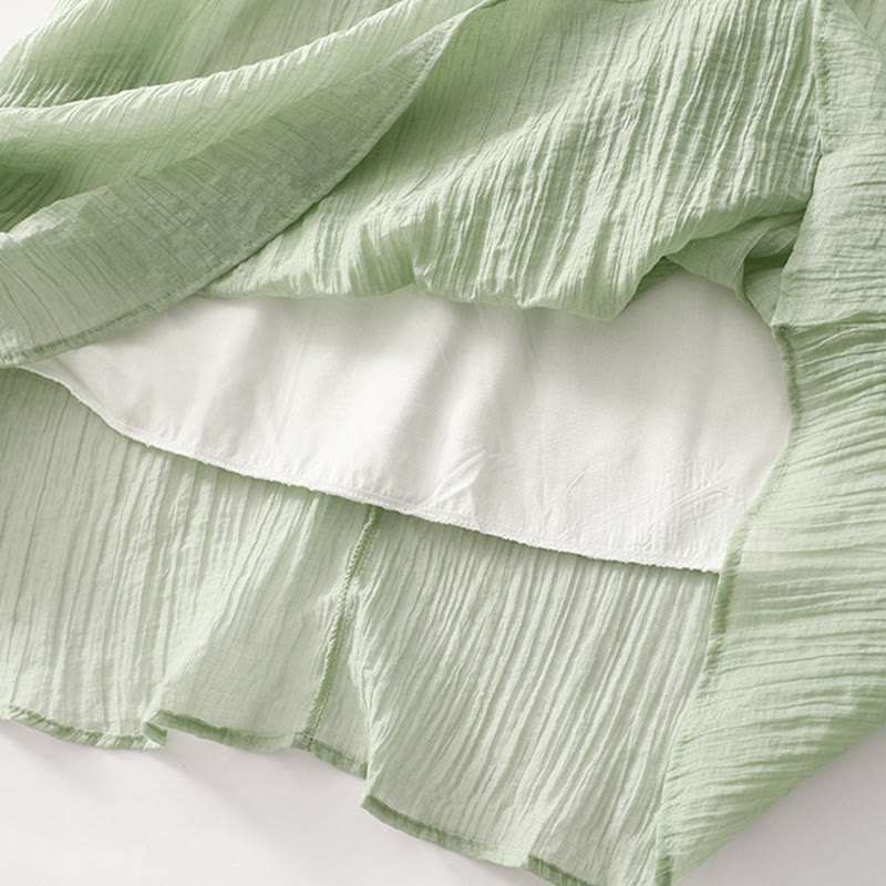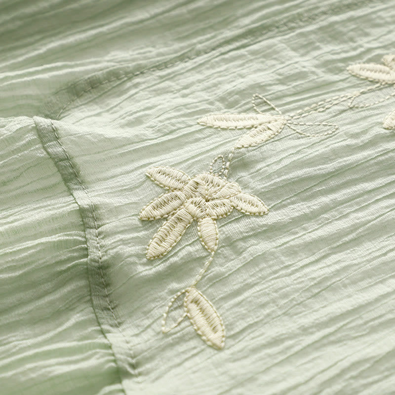 Buddha Stones Sommer-Midikleid aus legerer Baumwolle und Leinen mit schlichter Stickerei, doppellagig, kurzärmelig - Blassgrün - US8-10, UK/AU12-14,EU40-42 (2XL) - image 1
