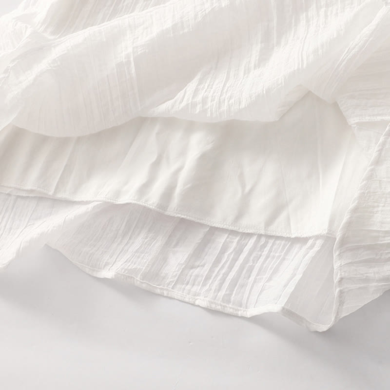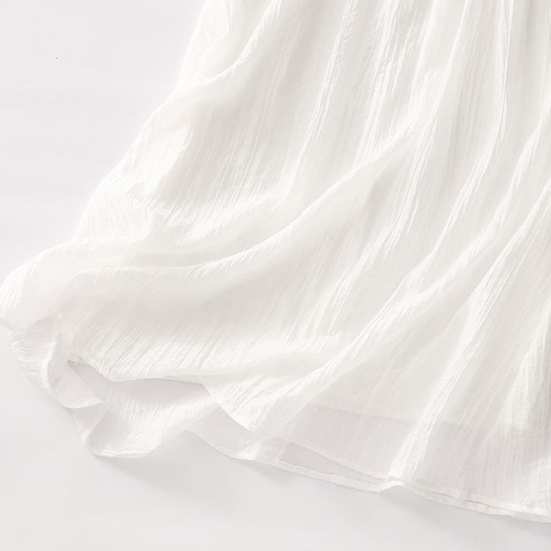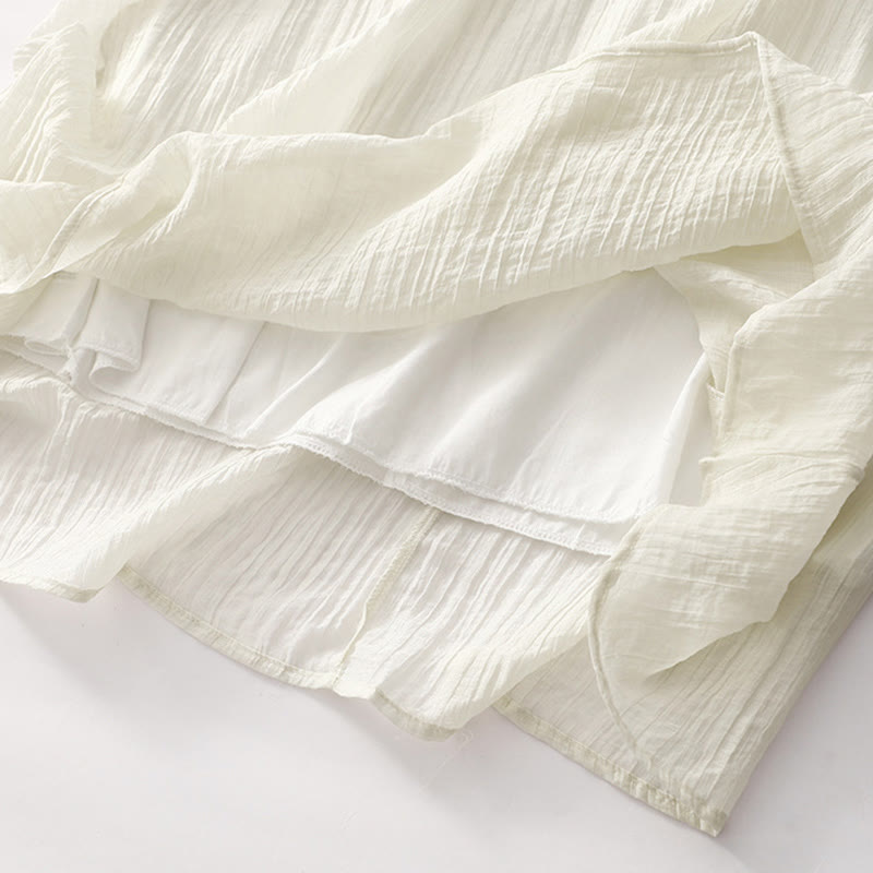 Buddha Stones Sommer-Midikleid aus legerer Baumwolle und Leinen mit schlichter Stickerei, doppellagig, kurzärmelig - Weiß - US8-10, UK/AU12-14,EU40-42 (2XL) - image 22