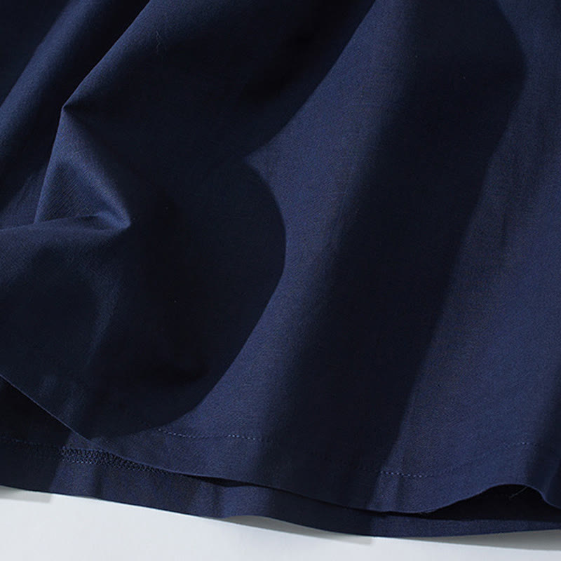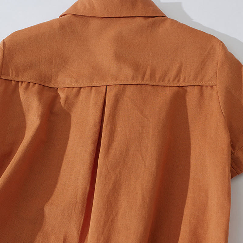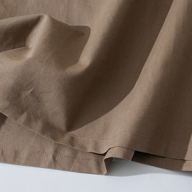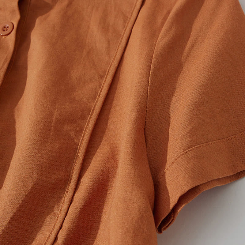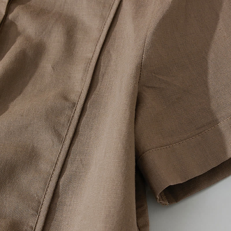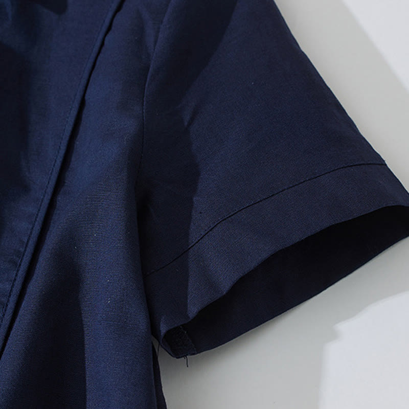 Buddha Stones Sommer-Retro-Midikleid aus Baumwolle mit einfarbigem Knopfdesign und kurzen Ärmeln und Taschen
