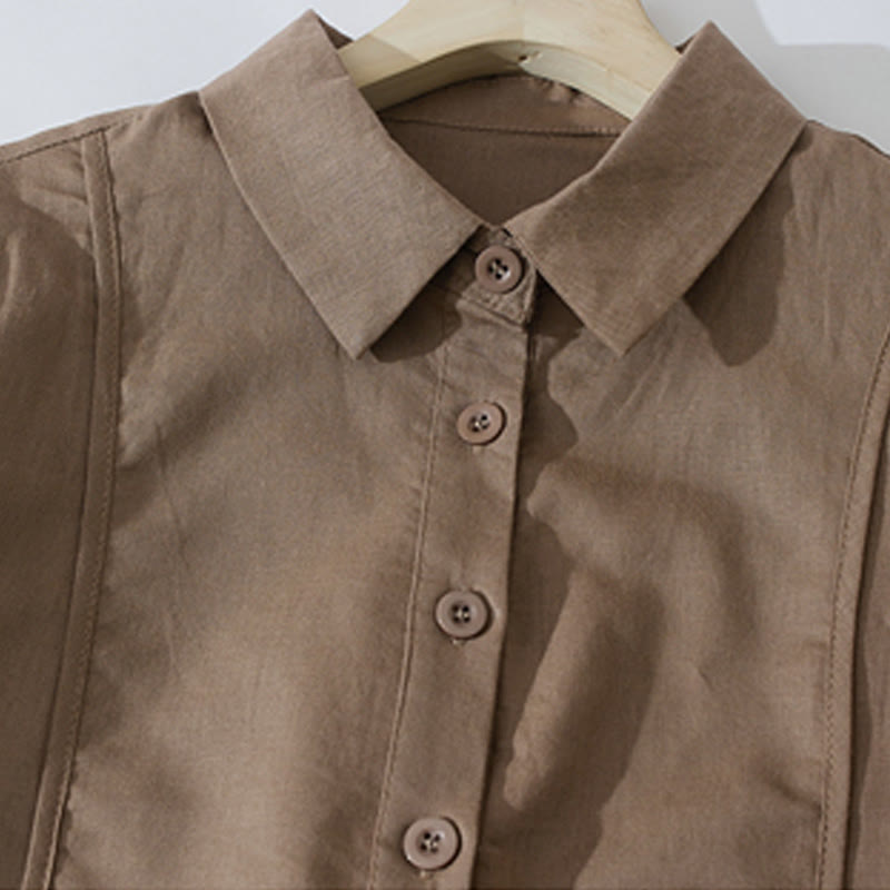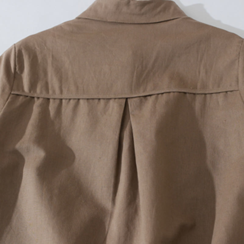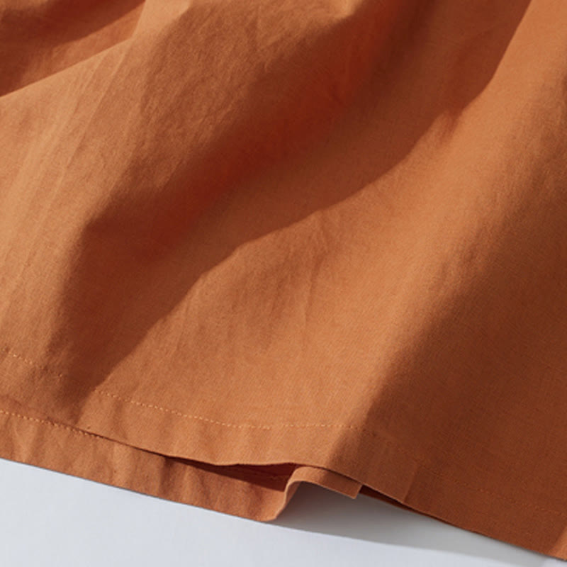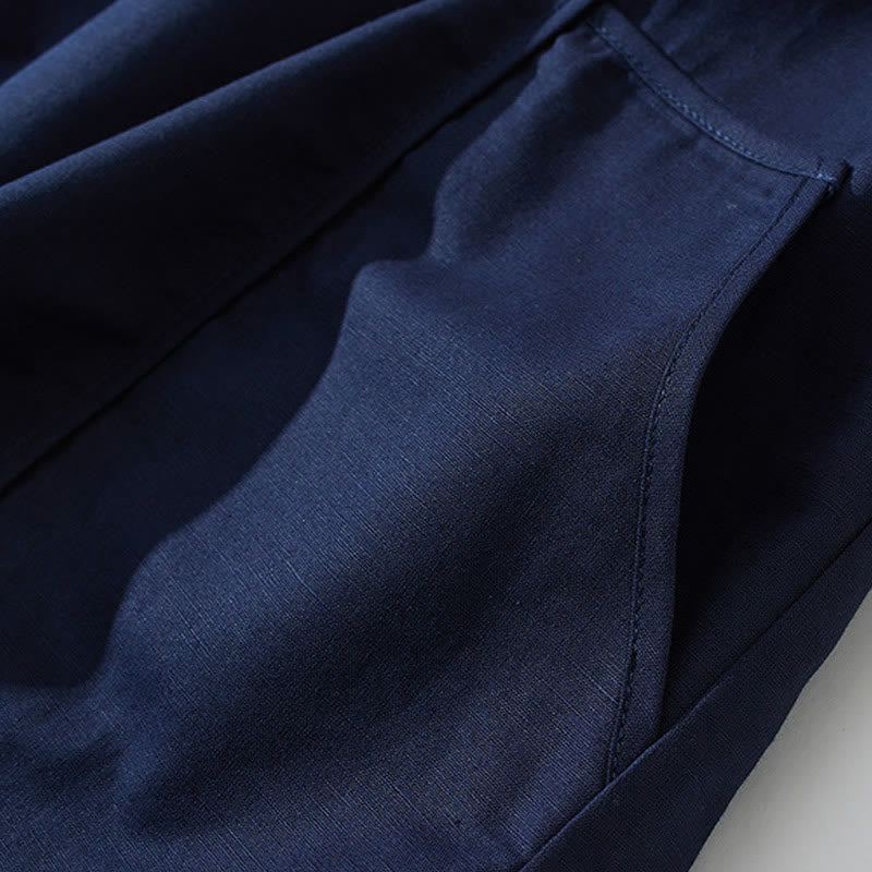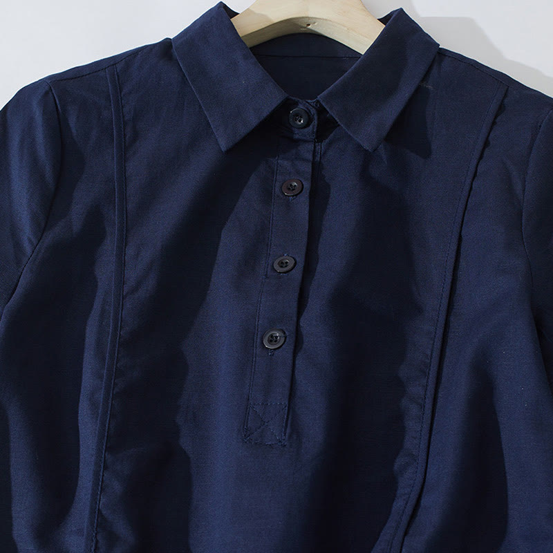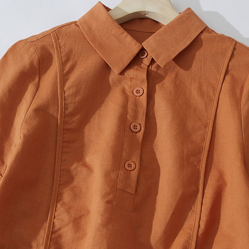 Buddha Stones Sommer-Retro-Midikleid aus Baumwolle mit einfarbigem Knopfdesign und kurzen Ärmeln und Taschen