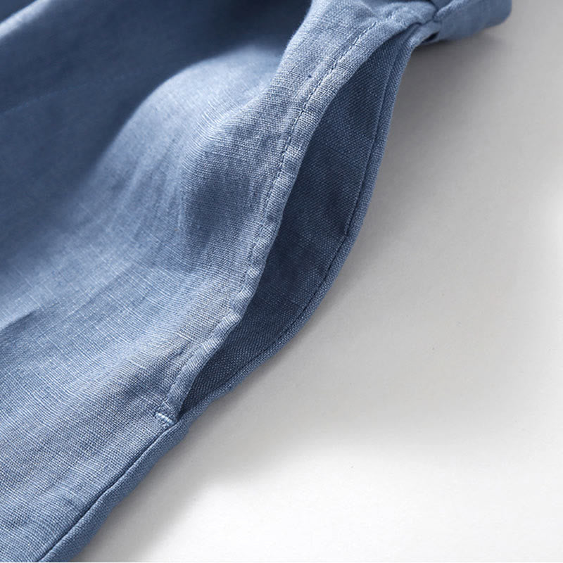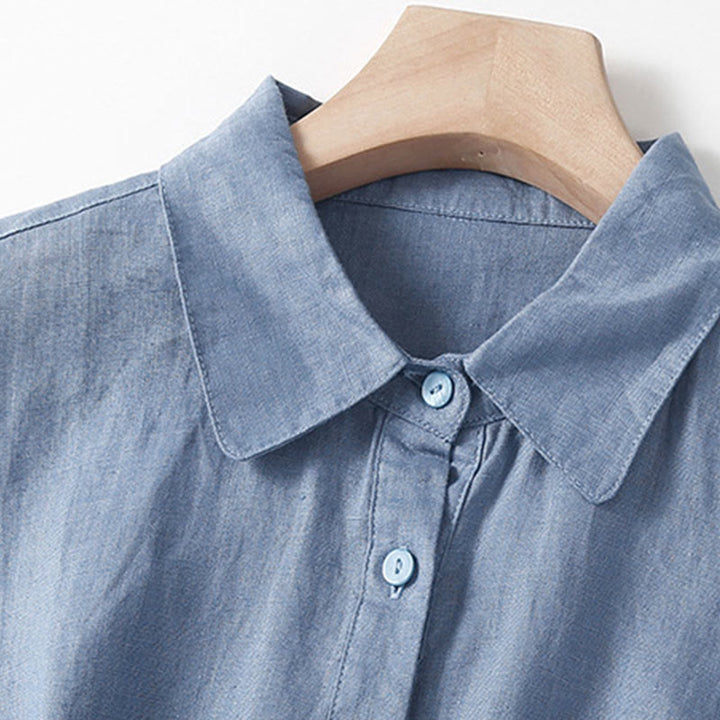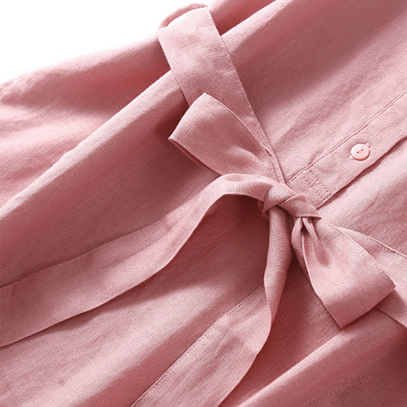 Buddha Stones Sommerliches, schlichtes, kurzärmliges Midikleid aus Baumwolle mit Schnürung und Taschen