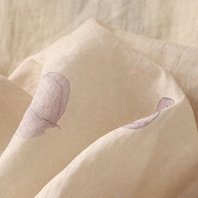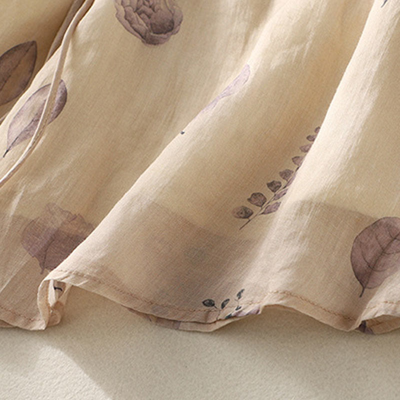 Buddha Stones Stickerei Design Blätter Damen Baumwolle Leinen Dreiviertel Ärmel Shirt