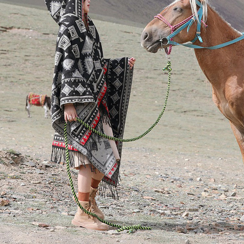 Tibetischer Schal mit Buddha Stonesn, Dreiecksmuster, Kapuzenumhang, gemütlicher Winter-Reiseschal