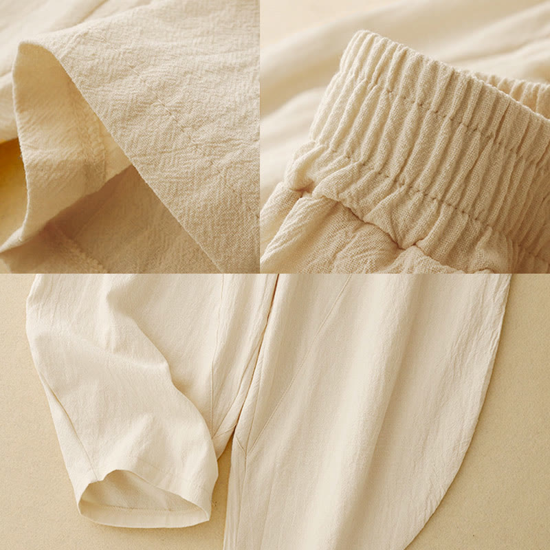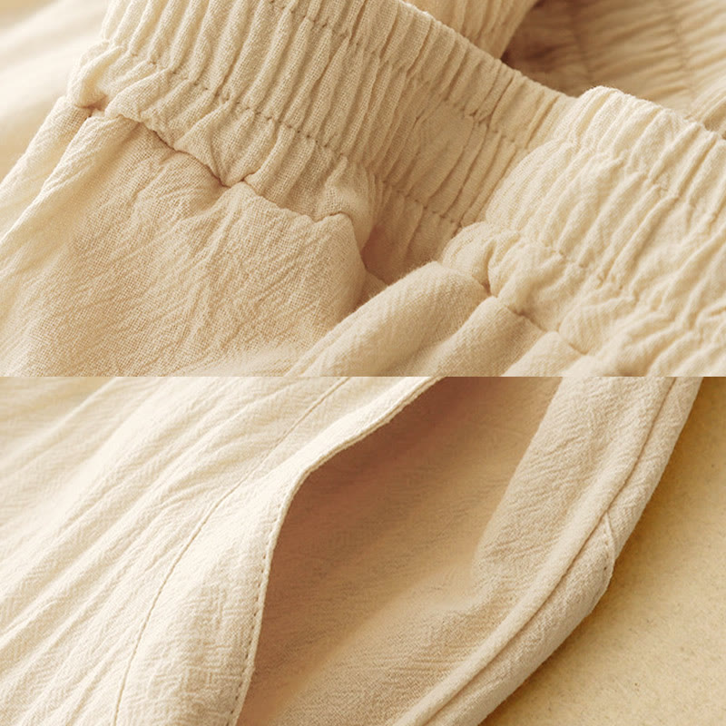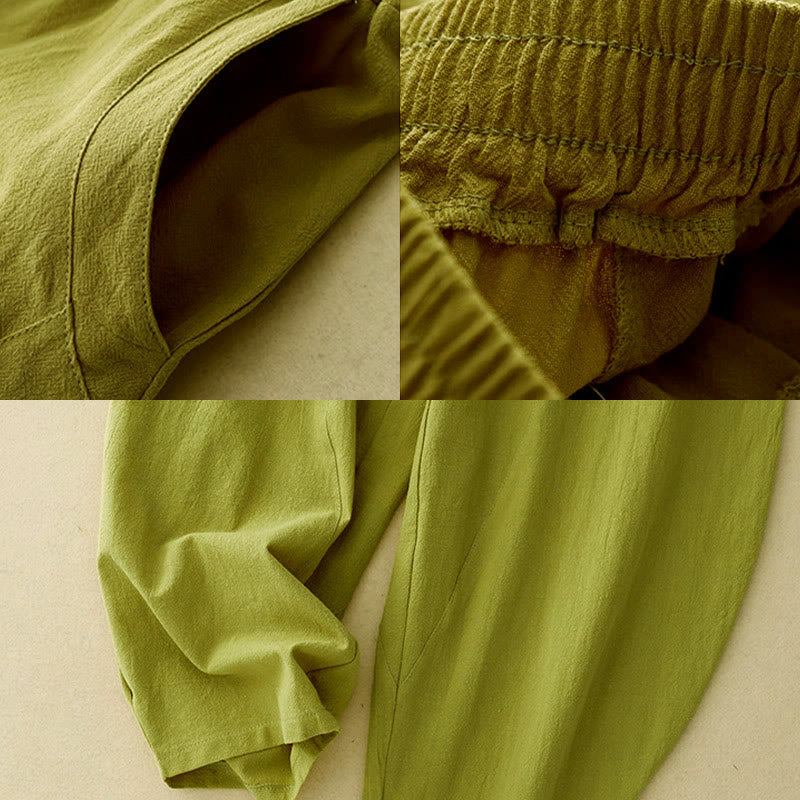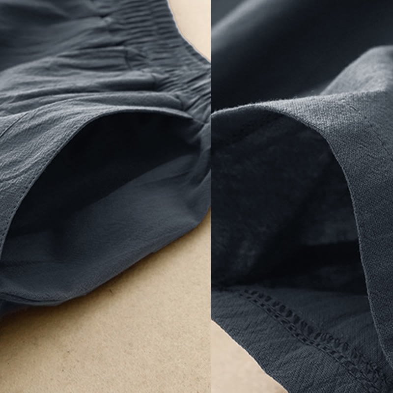 Buddha Stones Herbst Einfarbige Patchwork-Hose mit schlichtem Design, weites Bein und Taschen für Damen - image 15