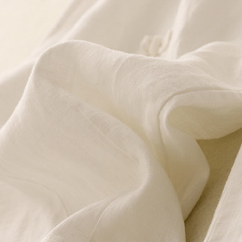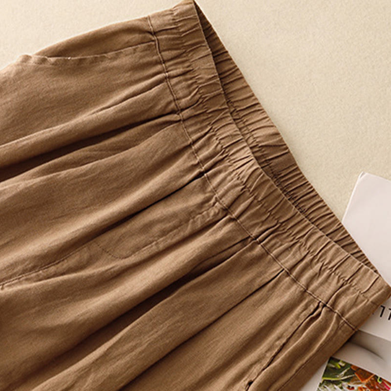 Buddha Stones Lässige, schlichte Haremshose mit Froschknopf-Design, Länge 7–8, Baumwolle und Leinen, für Damen, mit Taschen