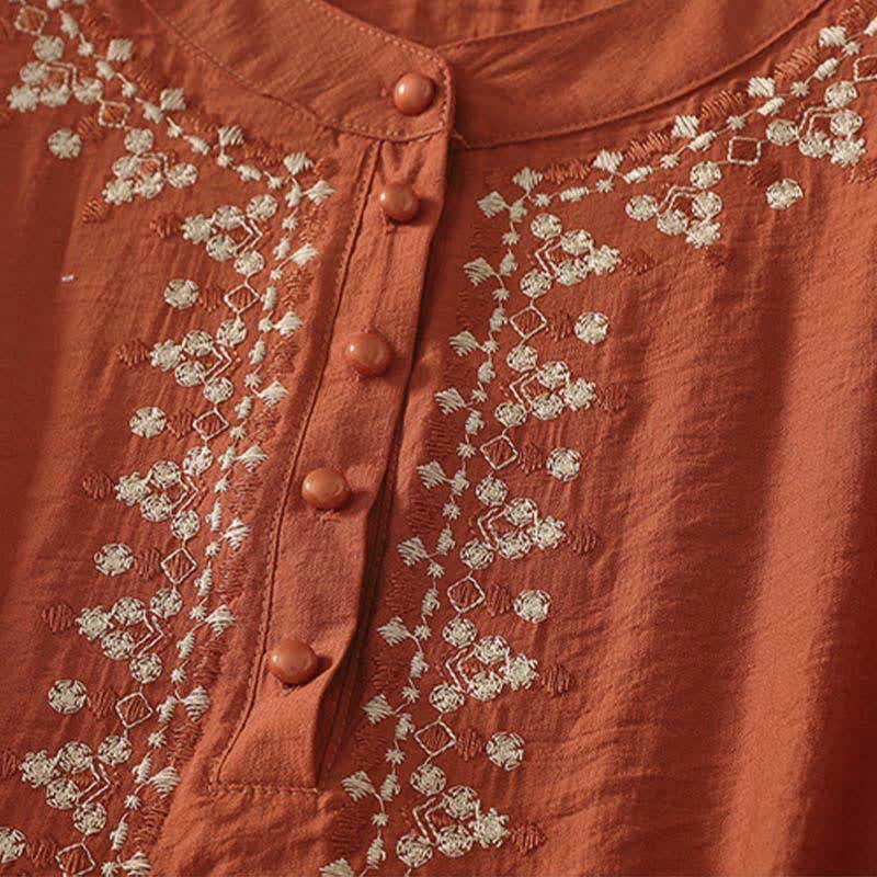 Buddha Stones Frühlingshaftes, besticktes Baumwoll-Kurzarmhemd für Damen mit halben Knöpfen und halben Knöpfen - image 18