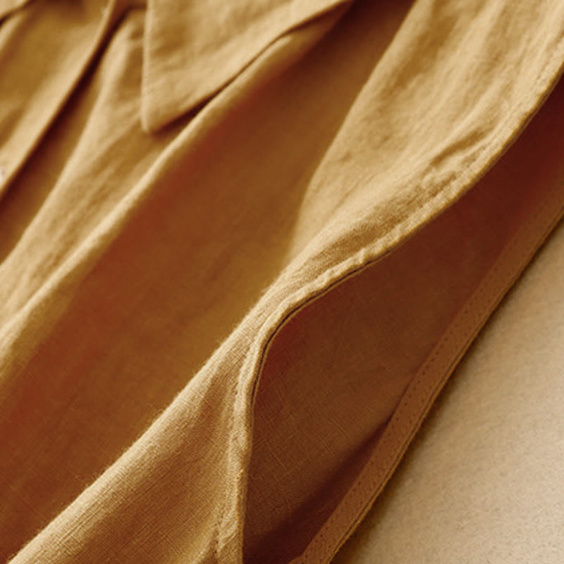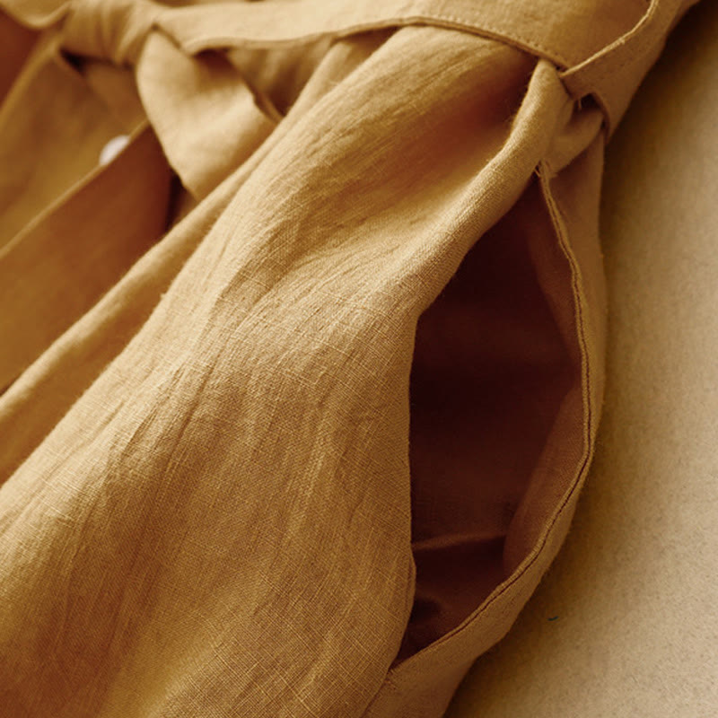 Buddha Stones Sommerkleid aus Baumwolle, schlicht, mit Schnürung, Knopfleiste vorne, Reverskragen, ärmellos, Midi-Länge - image 10