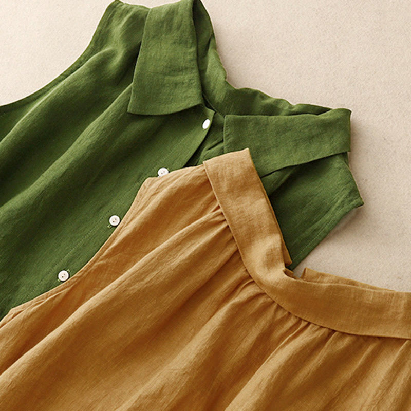 Buddha Stones Sommerkleid aus Baumwolle, schlicht, mit Schnürung, Knopfleiste vorne, Reverskragen, ärmellos, Midi-Länge - image 1