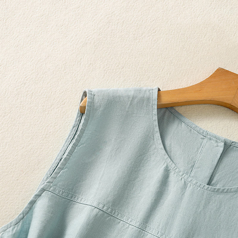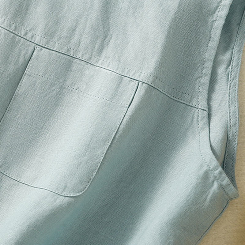 Buddha Stones Einfaches Rundhals-Knopf-Design Ärmelloses Damen-Unterhemd aus Baumwolle